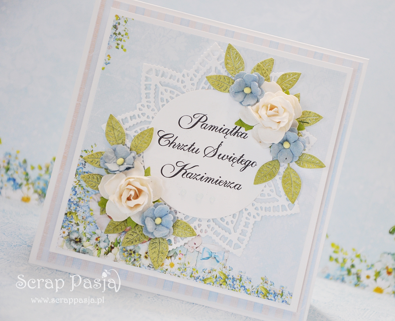 Witajcie, chwila odpoczynku od prac ślubnych i powstałą kartka na Chrzest Święty dla małego chłopczyka. Użyłam pięknych papierów Lemoncraft, które idealnie pasują do takich prac.